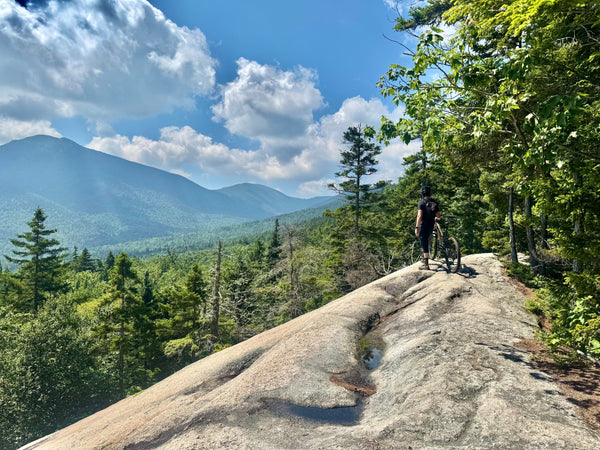 A really fun and lesser known hike-a-bike, Potash Mountain. Leaving from the Downes Brook trailhead off the Kancamagus Highway, Potash Mountain Trail splits diverges from the Downes Brook Trail about a quarter mile in. After one quick river crossing, the trail cuts to the chase and climbs rather quickly to the summit without being aggressively steep. About halfway up there is a gorgeous lookout offering dreamy views of Mount Passaconaway. This descent does have one tough little boulder field that we haven't quite pieced together yet, but its pretty short and doesn't take away from the ride. Otherwise the trail holds tons of slab, roots, and some slithery little rock gardens. The bottom section turns to some choice loam with some fun corners. If you've been itching for an adventure with about 1500 ft of gain/descent, put this on your list!