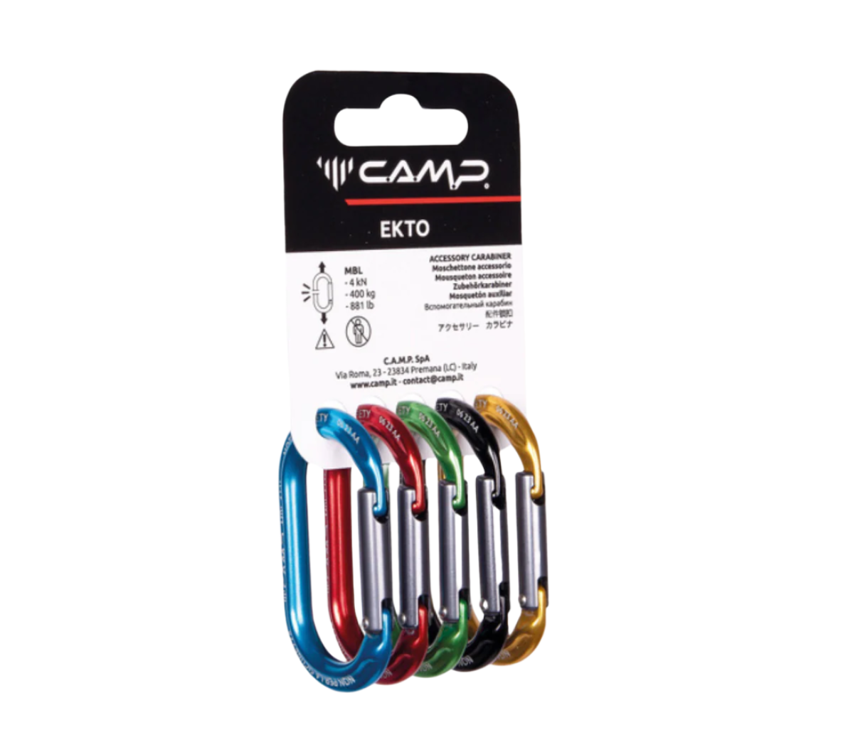 • Rack pack of 5 color differentiated Ekto accessory carabiners