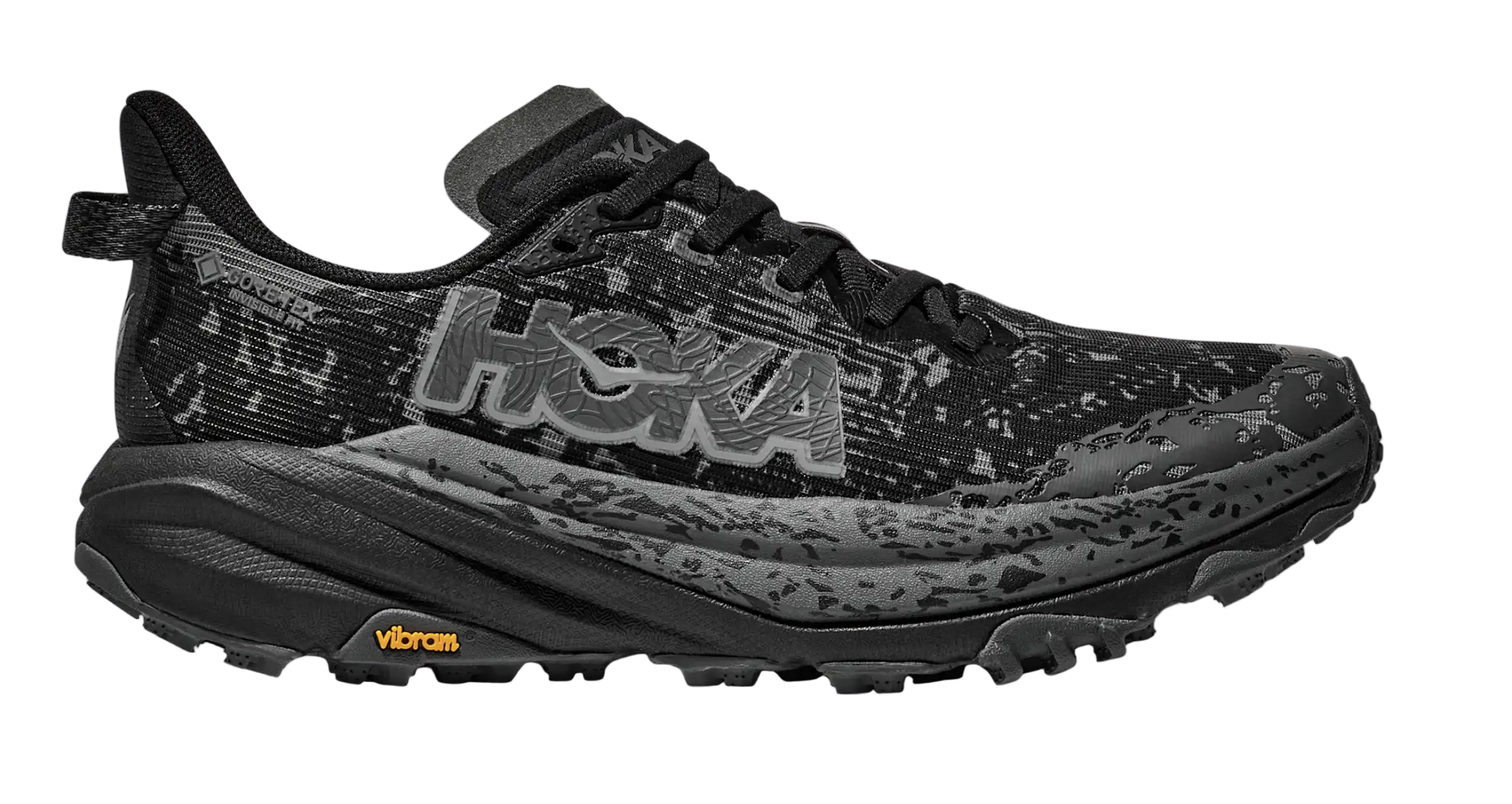 The Speedgoat 6 GTX is now even more comfortable with GORE-TEX's Invisible Fit waterproof membrane for a lighter, more flexible construction to help avoid pressure points. Grounded in a Vibram® Megagrip with Traction Lug outsole for increased bite on loose soil, this trail icon employs a foot-cradling heel bolster, lightweight, responsive midsole compound, and a protective toe rand for charging through the rough stuff. Bring it, weather.