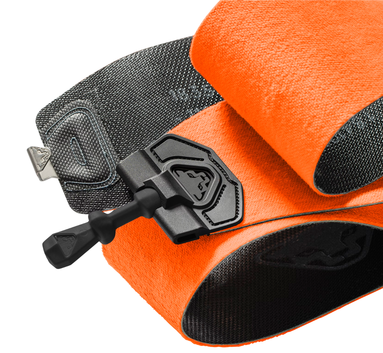 The Tigard 107 ski touring skins are targeted precisely to fit the Tigard 107 ski. They are made by POMOCA in Switzerland and have impressively high quality for the snow. The Tigard 107 skins were developed especially for discerning freeriders. They are extremely light, prevent the annoying buildup of clumps of snow, and have excellent grip and glide characteristics. A special membrane in the middle prevents water absorption and eliminates the need to seal a skin’s edges. The skins are tear- and abrasion-resistant. They can be easily folded and stashed. The DYNAFIT tensioning system lends the ideal connection between skin and ski tip. Snow and ice cannot possible work their way in because the skins fit snugly all the way to the tips. You maintain high performance, more comfort and maximum safety for your backcountry touring adventures. Tigard 107 ski touring skins – efficient and reliable for energy-saving climbs.
