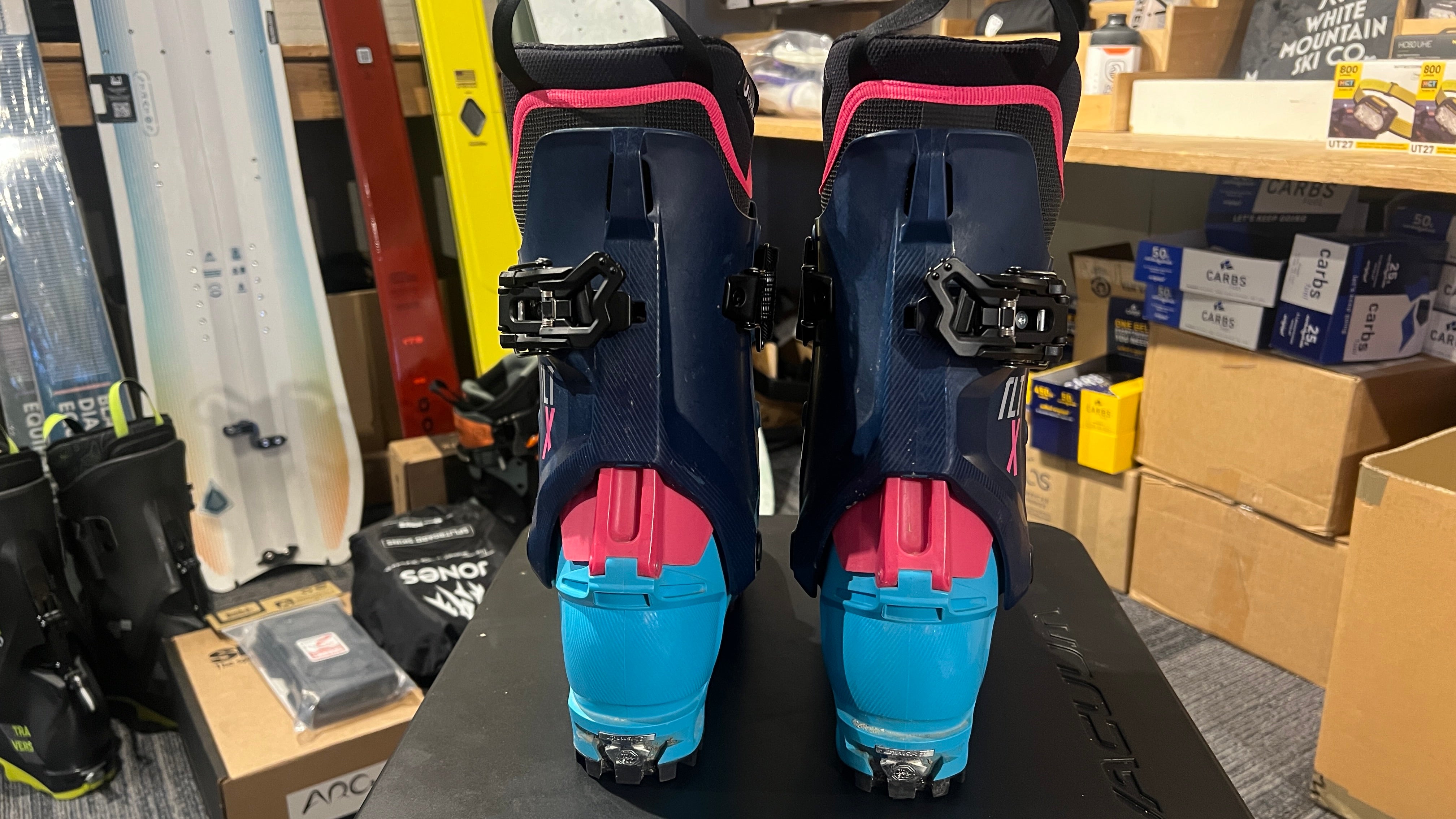 Lightly used pair of Dynafit TLT X women's ski boots in mondo size 26.5