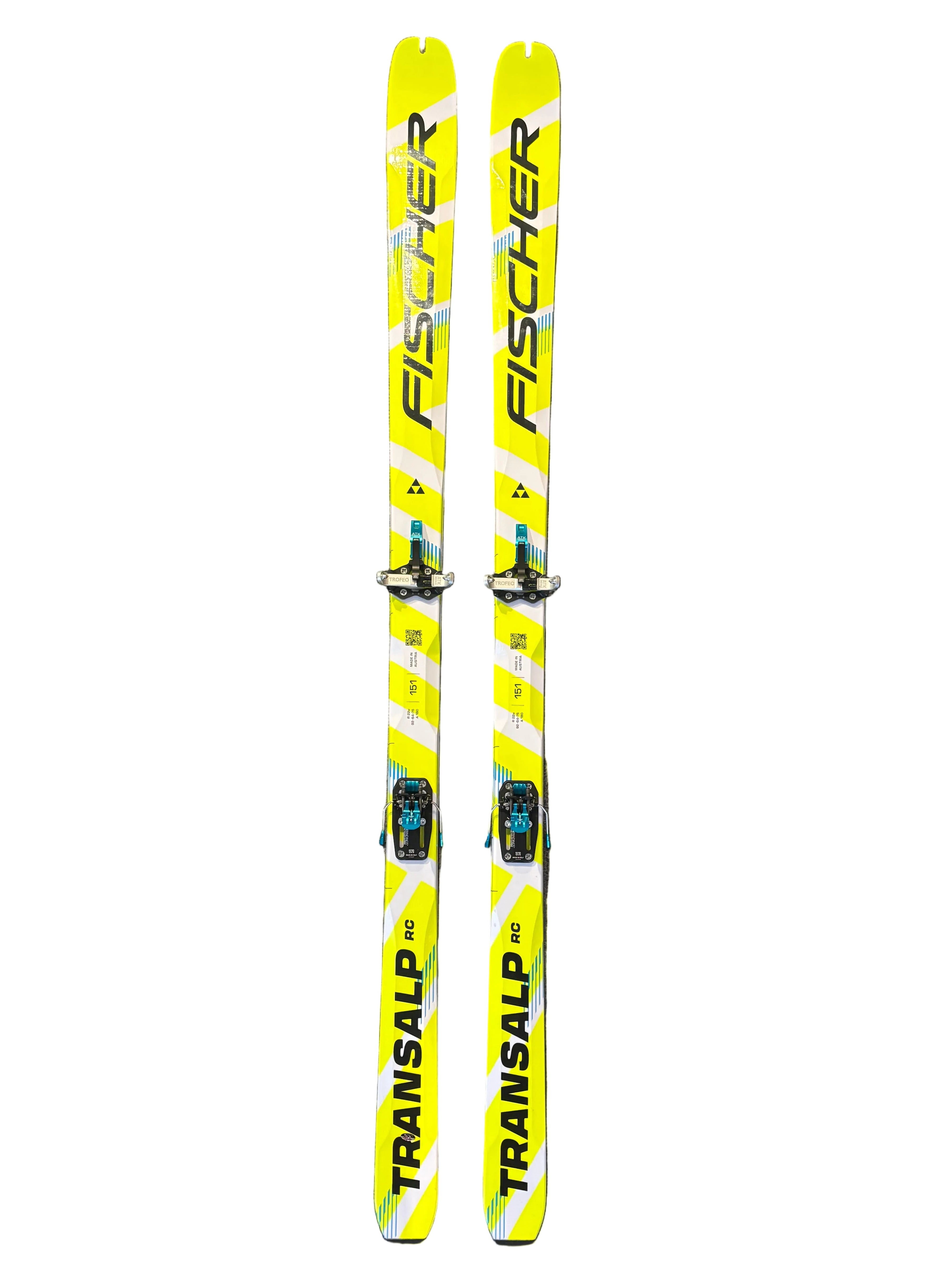 A lightly used pair of Fischer Transalp RC 151cm ski. Mounted with a ATK Trofeo Brake. (Mounted for 290BSL +/- 15mm) The ski was used for a fe runs, bases and edges are in near perfect shape. Binding is fully functional. Does not come with skins.