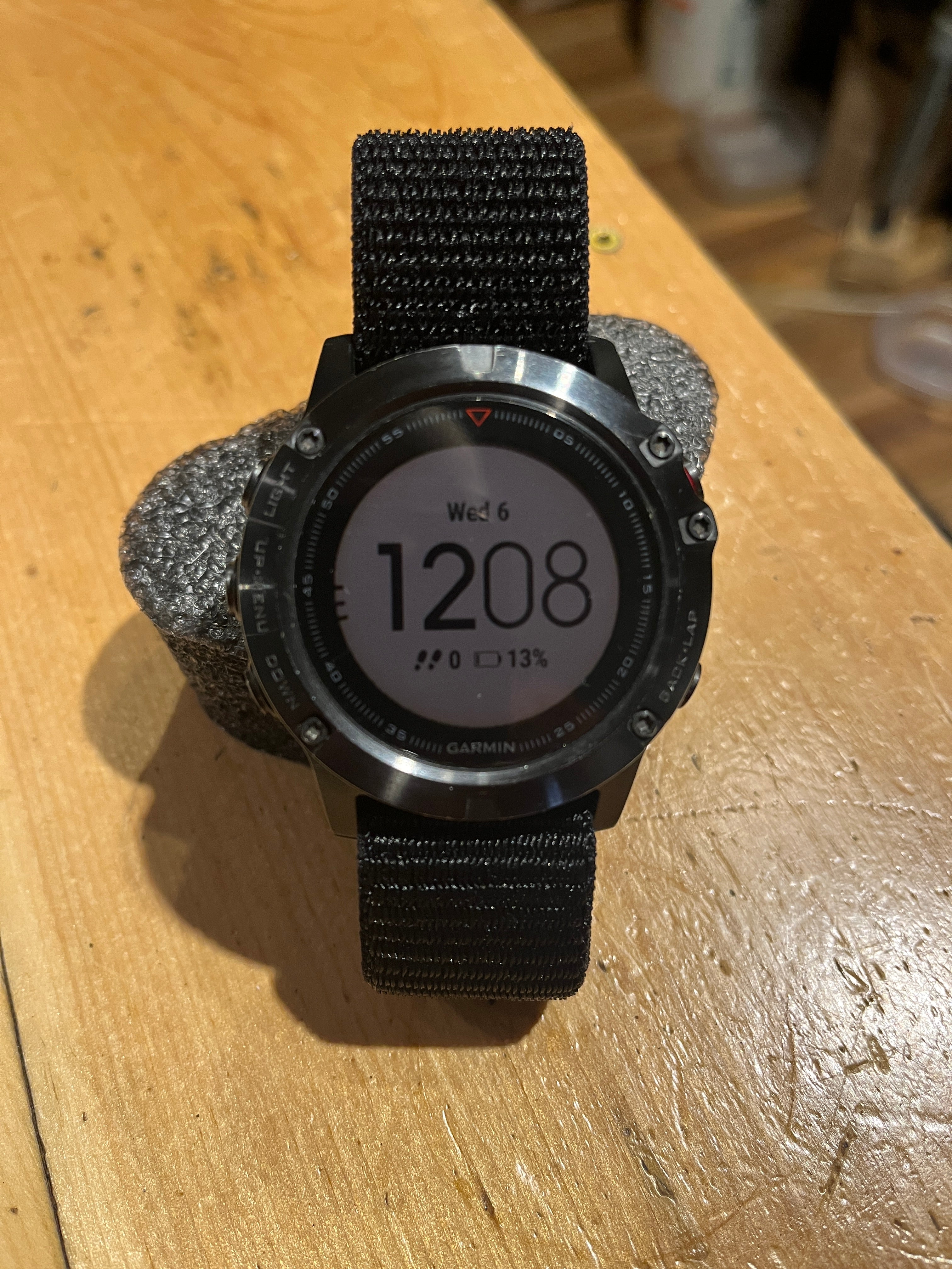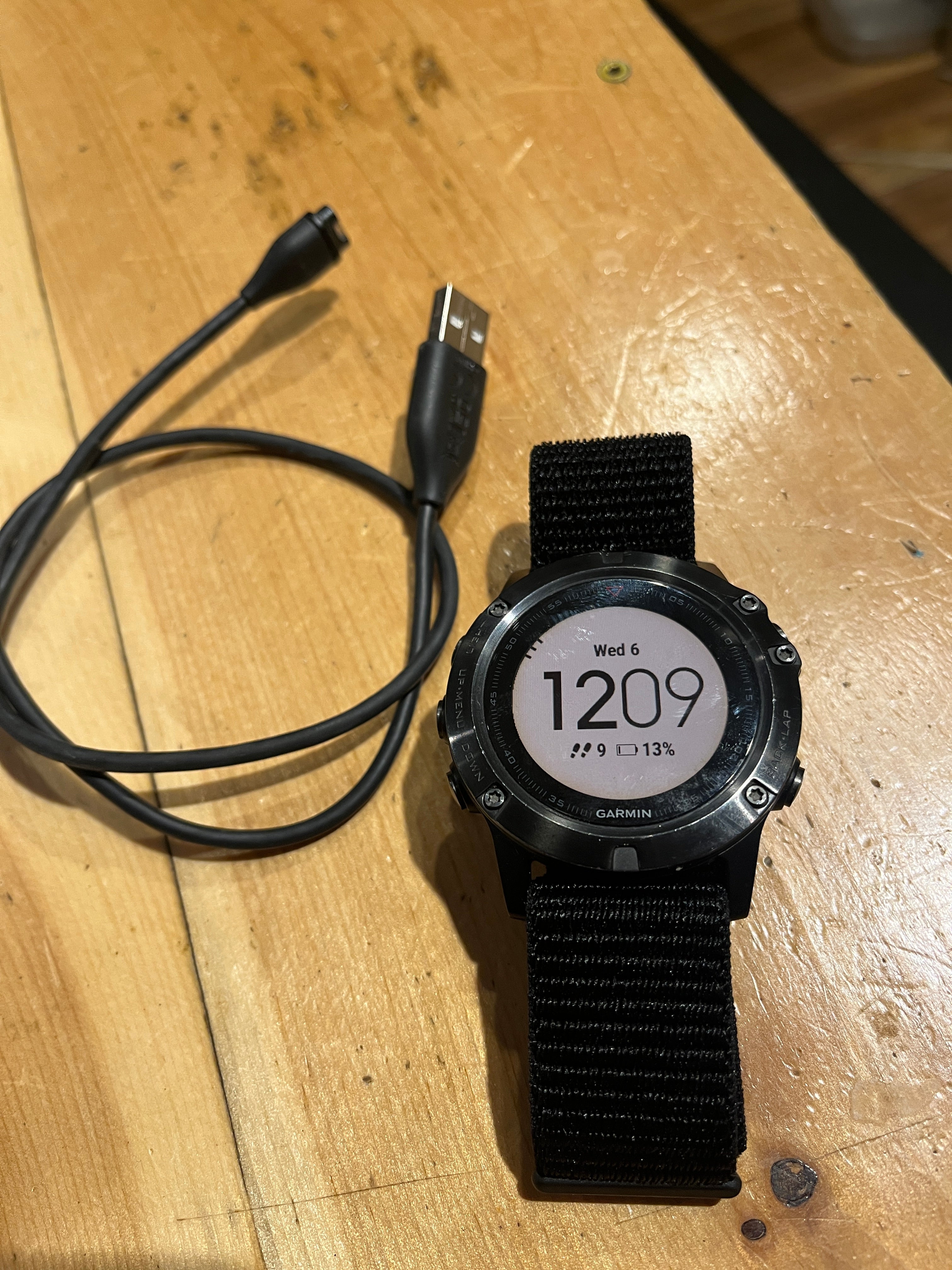 Lightly used Garmin Fenix 5X. Screen is clean! Tiny, almost unnoticeable scratches on bezel. Comes with charger, original box, and paperwork.