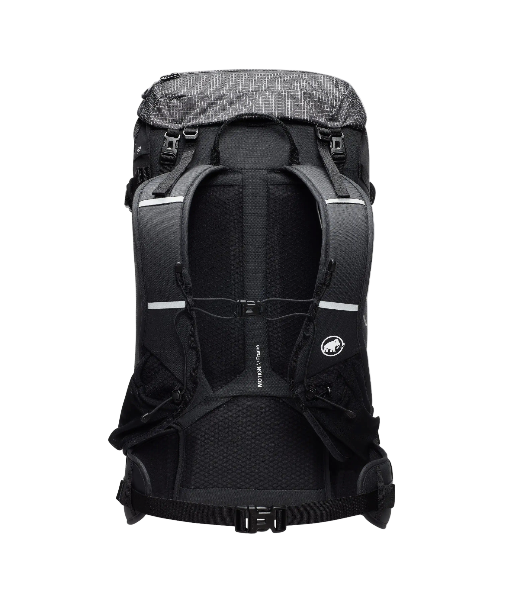 - Compression straps can be tensioned at side and front