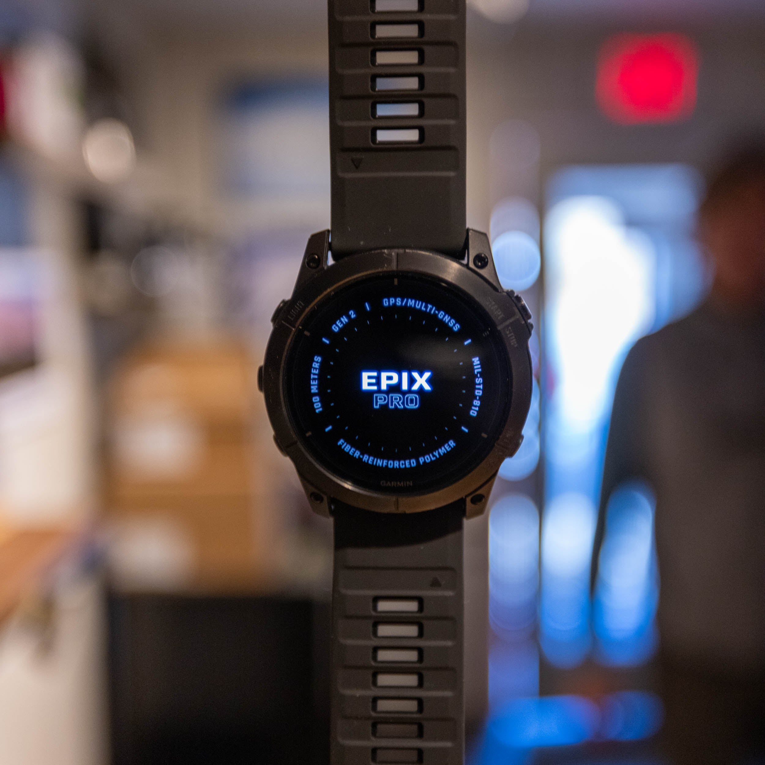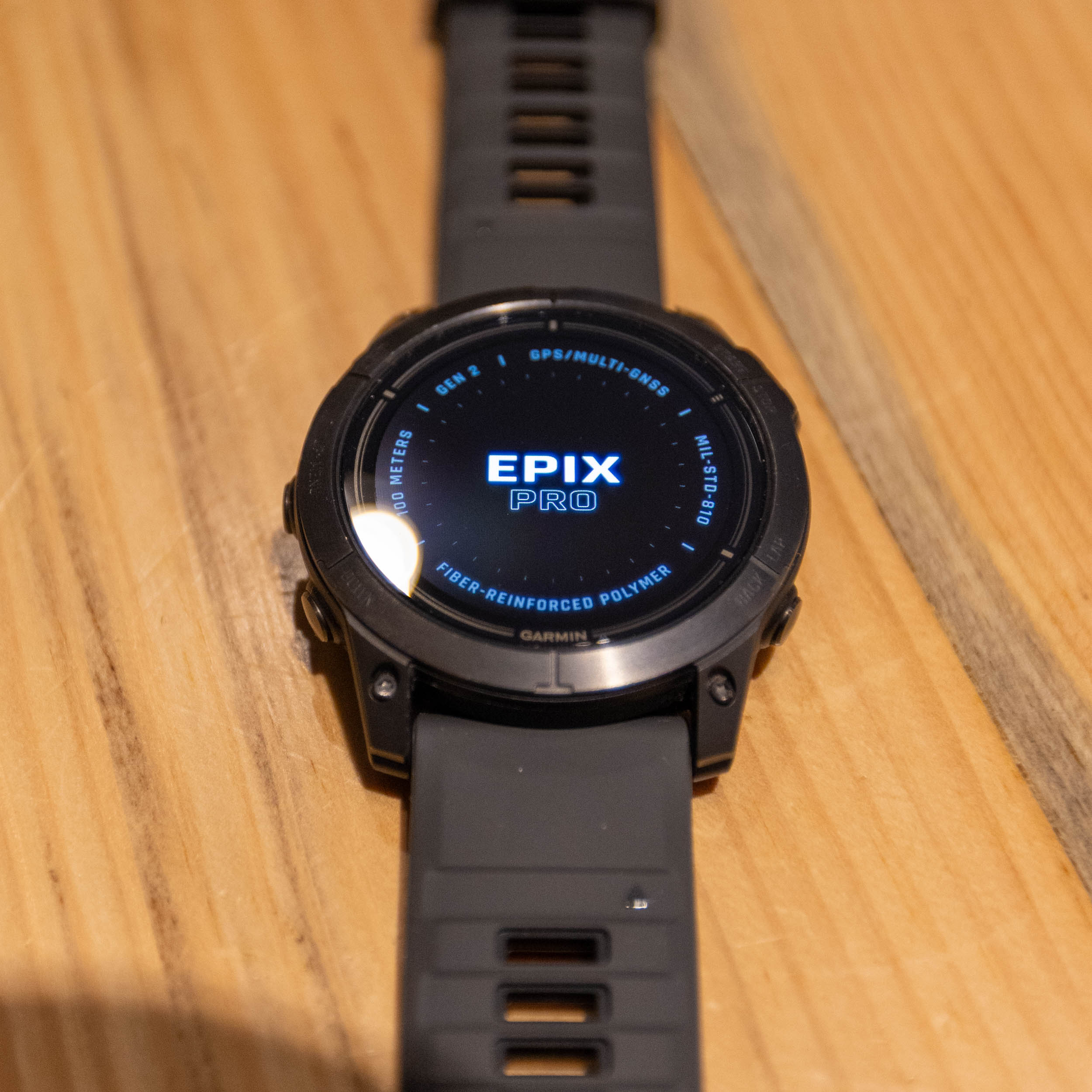 Lightly used Epix Pro - light cosmetic scratches on bezel, screen in perfect condition. Includes USB-C charging cable, and original box. Product 010-02604-00
