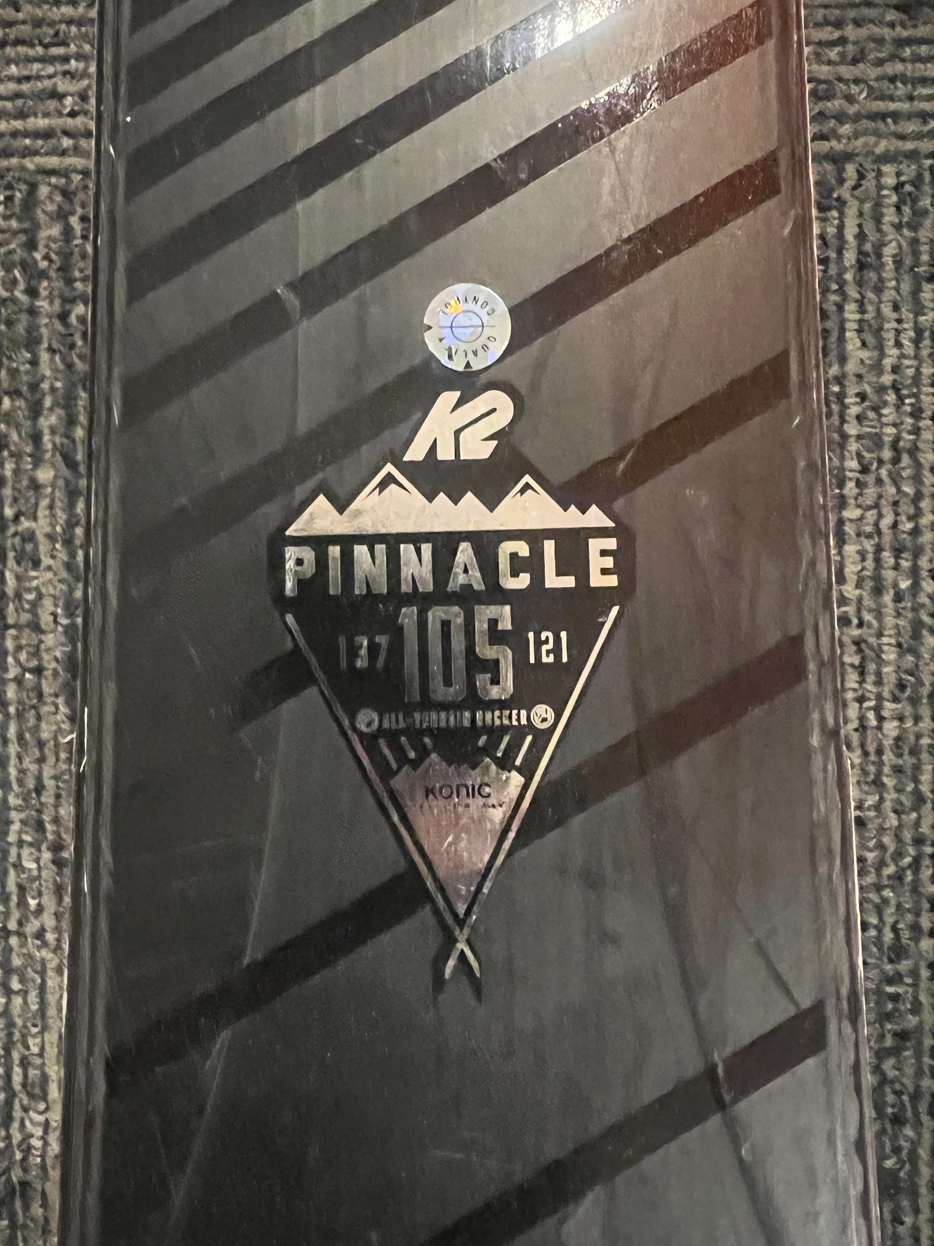 If you're in the market for a pair of used all-mountain destroyers this is your ski. K2 Pinnacle 105 Skis. Part of K2's Freeride series, the Pinnacle 105's hungrily devour whatever terrain is thrown their way; ample mobility to navigate moguls or trees but still plenty of width to float easily through powder. An aspen and NANOlite core shed weight while a triaxial braid and metal laminate offer the solid dampness to easily shred crud and variable conditions. For the hard charging skier who wants turn the whole mountain into their playground the K2 Pinnacle 105 Skis are the sticks for you.