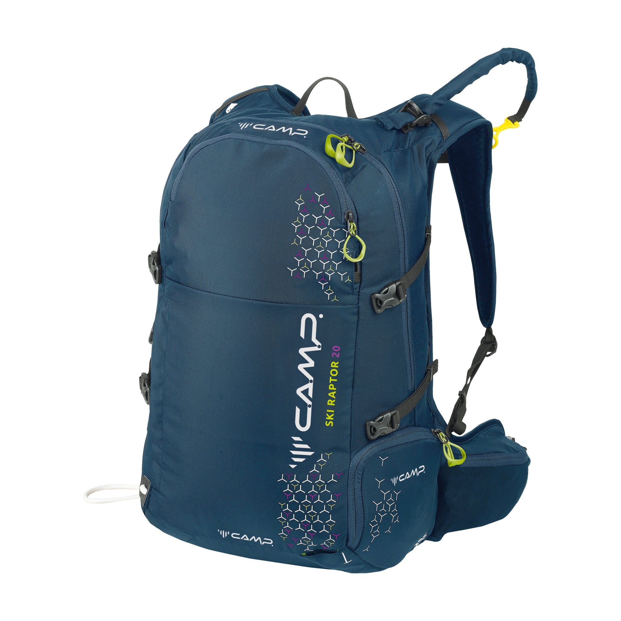 The 20 liter version of the Ski Raptor is designed for lighter, faster freeride missions and for shorter athletes who probably have a hard time finding a freeride pack that fits their torso. The Ski Raptor builds on our years of designing purpose-built packs for specific adventures. Utilizing design features from our benchmark skimo race packs, the Ski Raptor is a truly unique freeride pack. Constructed from 420D ripstop nylon for incredible durability. Updated ergonomics for an even more profiled fit and enhanced load stabilization. New ventilated back panel and external edging on the shoulder straps for increased comfort. Other popular features remain like the X-Press ski carrying system that allows skis to be attached and removed without removing the pack, Full BackDoor access that makes gear accessible independent of where it is layered in the pack, hide-away systems for carrying essential gear like poles, axes and helmet, and a dedicated side entry crampon compartment. The tail loop for the X-Press ski carrying system is updated so it can be set in two positions making it easy to insert skis whether the pack is fully loaded or mostly empty. Skis can also be carried laterally with straps on the sides. The crampon pocket is also updated with the addition of magnets to help make sure the pocket is easy to close without removing the pack.