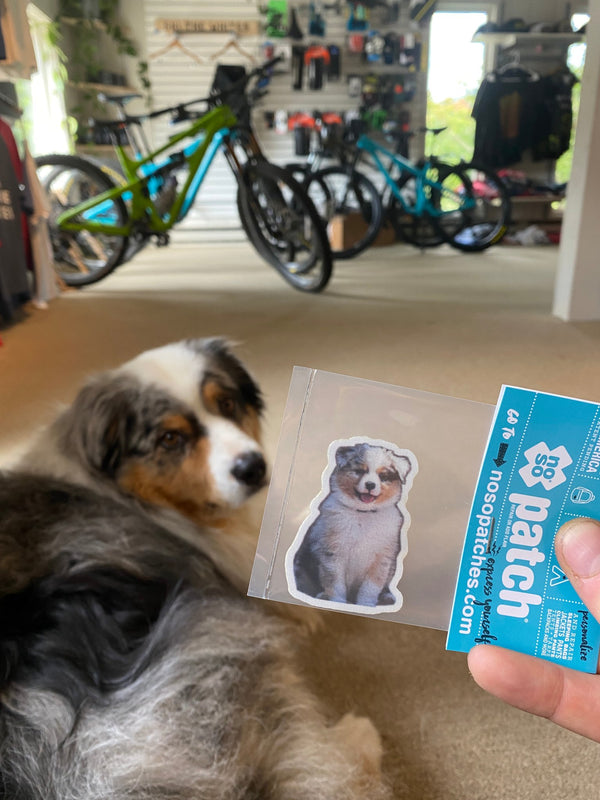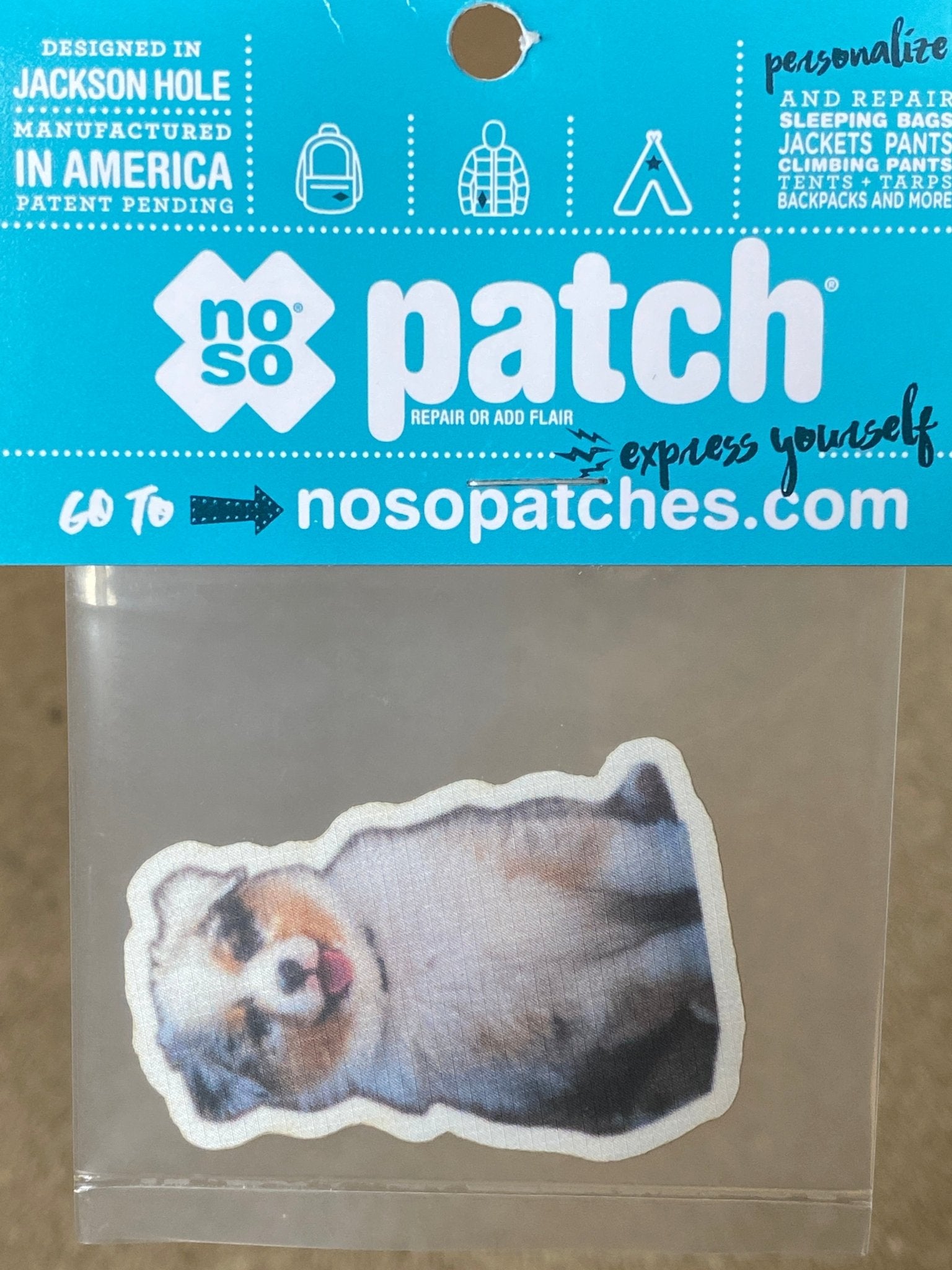 Nylon repair Puppy Puffy Patches from NoSo (2.3" x 1.5"). mountain logo. 1.9oz ripstop nylon is perfect for any sort of fabric repair - puffy jackets, windbreakers, inflatable mattress, and more.