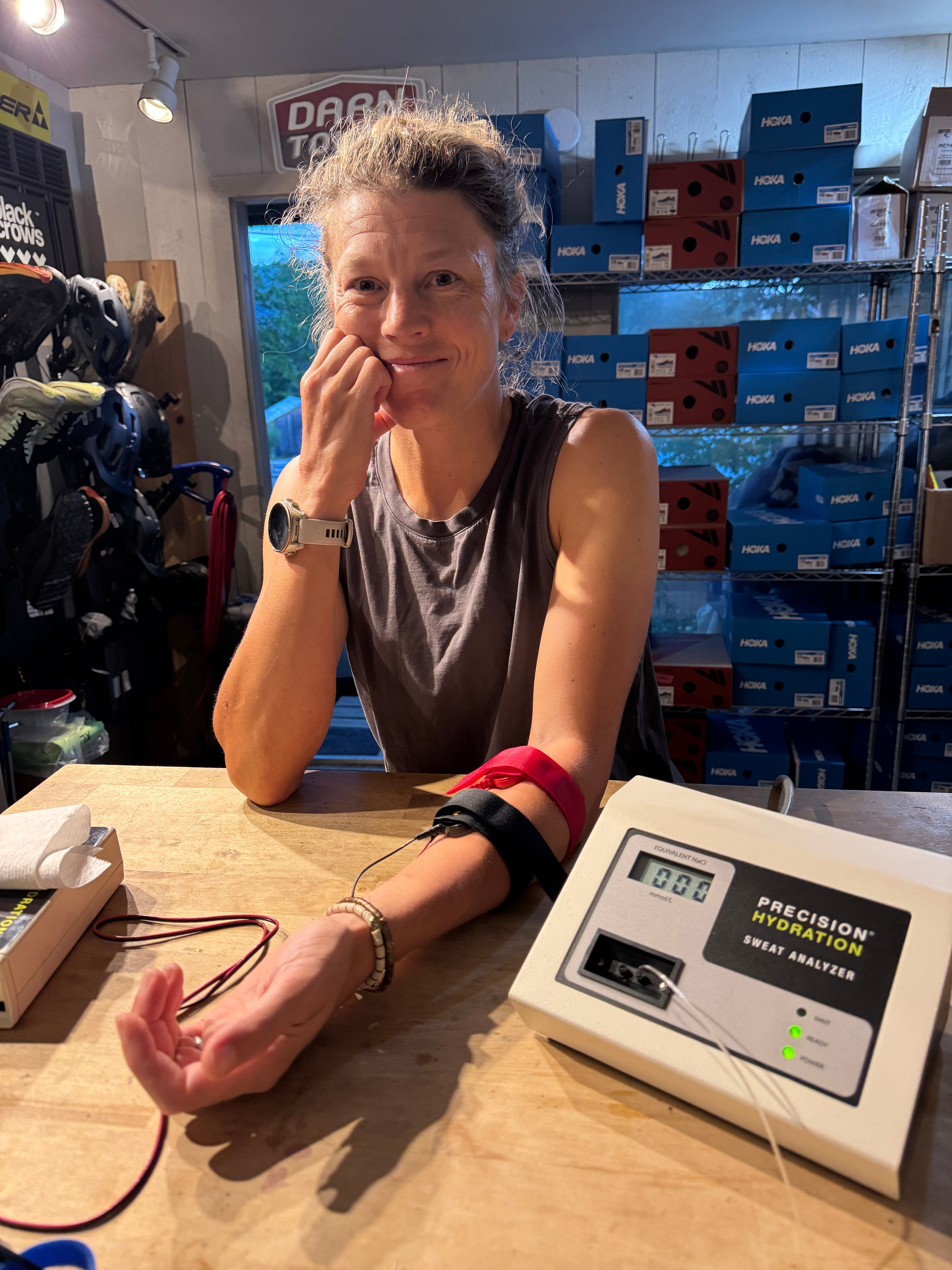 We're excited to offer sweat tests in house! Book an appointment for your test or gift a test. No longer guess what your sodium supplementation should be on long efforts - this test takes 30 to 45 minutes and will give you an accurate reading of your sodium concentration of your sweat, letting you know exactly how you should be replenishing on long efforts. You do not need to exercise for this test, we will induce sweat electronically. Read more about the testing processĀ here.