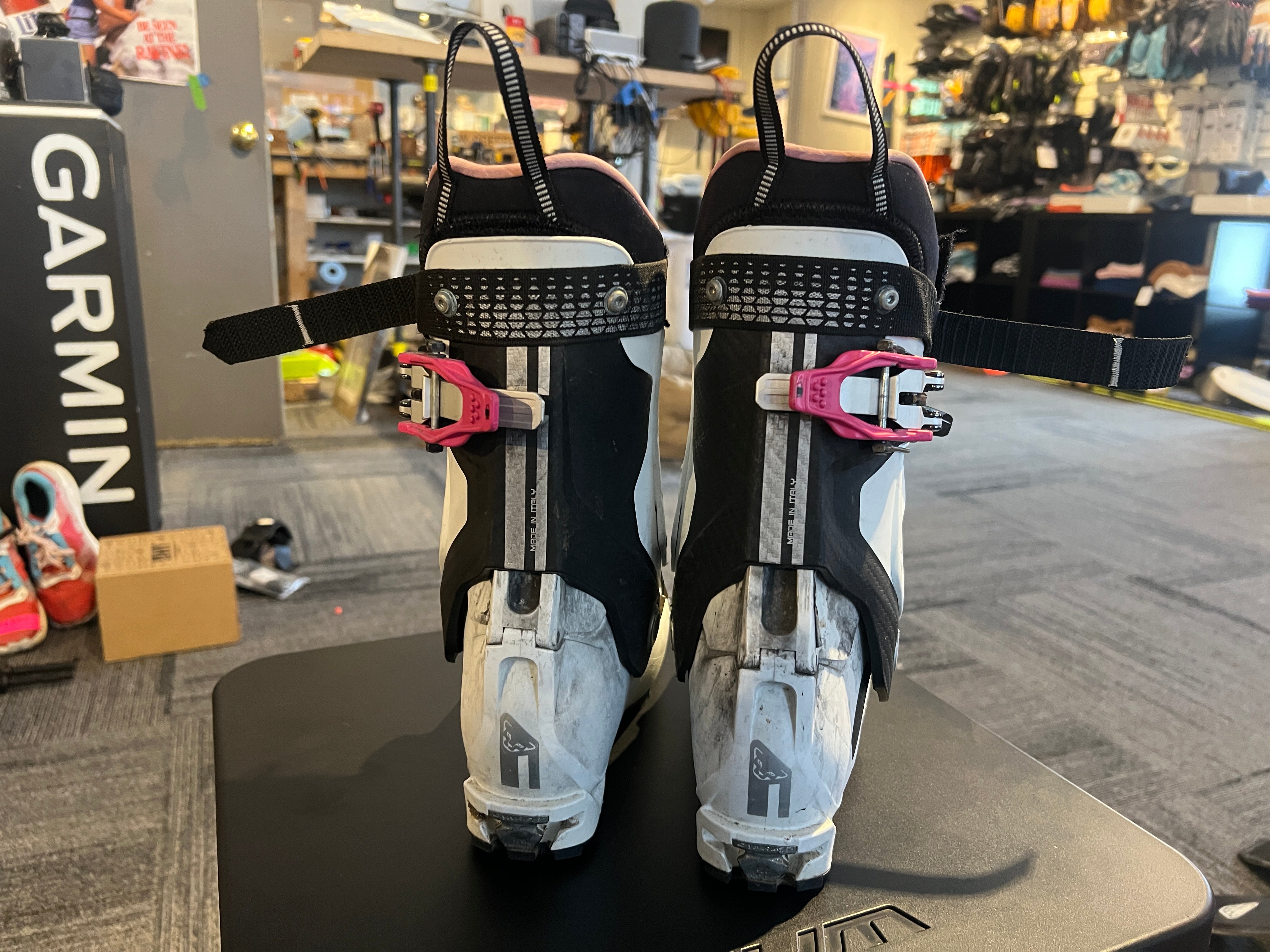 Well loved but still kickin' pair of Dynafit TLT5 women's ski boots in size 25.5. Great for an introduction to ski touring.